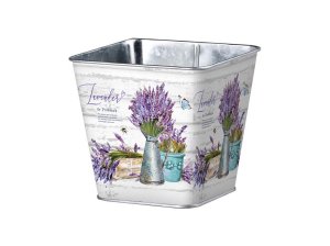 Plechový kvetináč hranatý Levanduľa vo farebnom prevedení 125x125x120mm