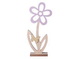 Dekorácia drevený kvietok s motýľom prírodný v ružovej farbe s glitrom 140x305mm