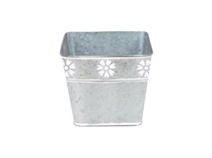 Plechový kvetináč hranatý bordúra kvietok v šedej a bielej farbe 125x125x120mm