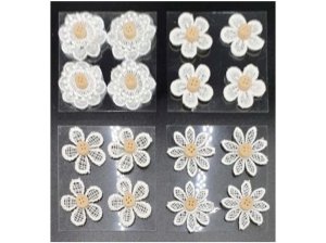 Dekorácia textilová v bielej farbe 4ks kvety s lepíkom 35x35mm