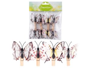 Dekorácia plastová + drevo vo farebnom prevedení 8ks motýle na kolíčku 45x55mm
