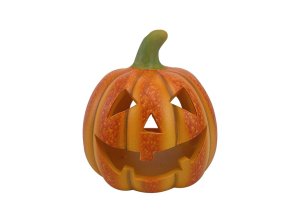 Keramická tekvica v teplej oranžovej farbe – ideálny jesenný svietnik.