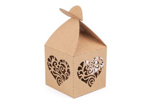 Papierová krabička v prírodnom štýle má vyrezávaný filigránový design.