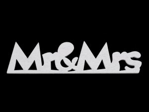Drevený nápis "Mr&Mrs" je vhodný na svadobné aranžovanie.