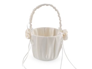 Elegantný saténový košíček je štýlovým a klasickým svadobným doplnkom pre malé družičky.