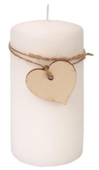 Sviečka biela s dreveným srdcom valec 7 x 14 cm, 48 hodín