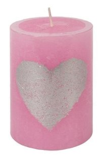 Sviečka ružová so srdcom valec 7 x 10 cm, 35 hodín