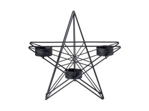 Čierny kovový svietnik v tvare hviezdy pre tri čajové sviečky - elegantné dekorácie.