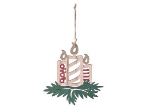 Matná vianočná sviečka je ozdobená trpaslíkmi av hornej s spodnej časti čipkou.