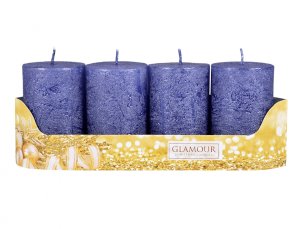 4 adventné lesklé bordó sviečky v tvare valca zotriedené podľa výšky.