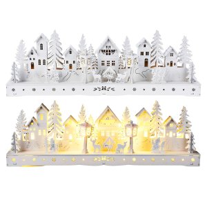 Dekorácia DOMKY 45 cm, LED, drevená BÍ. rozmery: 45 x 5,8 x 15 cm materiál: topoľové drevo 15 LED, teplá biela 2 x AA batérie, nie sú súčasťou Drevená LED dekorácia s motívom zimnej ulice navodí tú pravú …