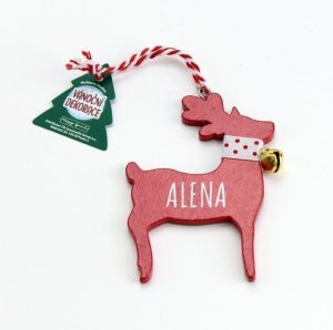 Drevené dekorácie s menami či textami je možné použiť nielen ako ozdobičku na stromček, ale aj ako štýlovú menovku na darček.