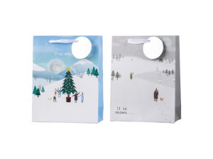 Darčeková taška 260×320 mm – škriatkovia a vianočná krajina, farebný mix motívov.