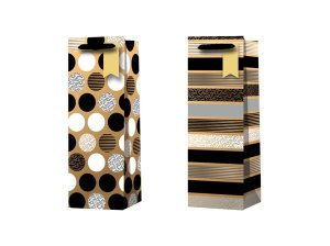 Taška na fľašu 130x125x370 mm s motívom bodiek a prúžkov v bielej, čiernej, zlatej a šedej farbe, mix
