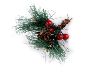 Umelá mini vetvička s bobuľami a šiškami oživí jesenný a zimný aranžmán.