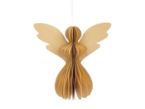 Závesný anjel je vyrobený z plástvového papiera, ktorý pri roztiahnutí vytvára efekt pripomínajúci včelieho plástu.