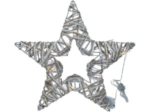 Vianočná hviezda kolorovaná z drevenej preglejky 10 LED Farba svetla: teplá biela Rozmery: 305 x 60 x 140 mm Vhodné iba pre vnútorné použitie (IP 20) Napájanie: 2xAA Batérie nie sú súčasťou balenia