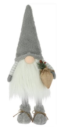 Dekorácia LED ŠKRÍTOK STOJÚCI 65 cm, BIE/ŠE mix. výška: 65 cm mix farieb: biela, šedá 1 x CR2032 batéria, je súčasťou Veselá postava zababušeného zimného škriatka iste vykúzli úsmev u detí i dospelých.