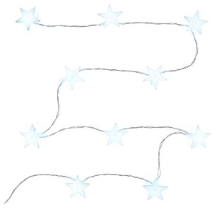 Hviezdy 10LED s prísavkami Celková dĺžka kábla: 1,8 m Dĺžka osvetleného kábla: 1,5 m Dĺžka prívodnej šnúry: 0,3 m Počet LED: 10 Farba svetla: studená biela Typ batérií: 2xAA Na vnútorné použitie Krytie: …