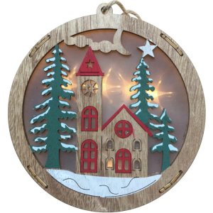 Vianočné dekorácie - kostolík z drevenej preglejky 3D svetelný efekt pozadia 5 LED Farba svetla: teplá biela Rozmery: 14,5 x 3 cm Vhodné iba pre vnútorné použitie (IP 20) Napájanie: 2x AAA Batérie nie sú súčasťou …