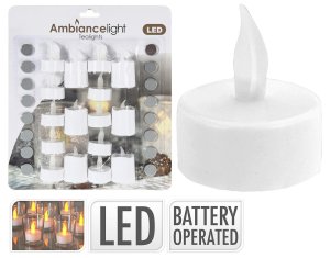 Sviečka čajová LED, priemer. 3,5 cm, mix, s batériami, BÍ (16 ks). priemer? 3,5 cm farba: biela balemí: 16 ks súčasťou batérie LED sviečka čajová sa hodí pre navodenie príjemnej atmosféry.