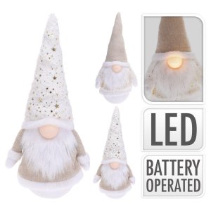 Dekorácia ŠKRÍTOK 43 cm, LED, mix. 1xLED dióda v nose výška: 43 cm materiál: textil, betónová báza, penový syntetický materiál, plast, piesok mix baev: biela / krémová čiapka, krémová / biela čiapka batérie: …