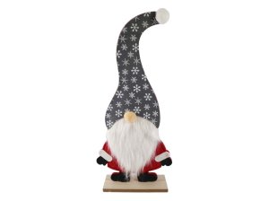 DEKORÁCIA SANTA PLSTENÝ ŠEDÝ DREVENÝ PODSTAVEC 35CM