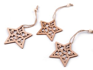 dekorácia na zavesenie drevené Vločka drevená biela 6,5 cm 3ks, na zavesenie
