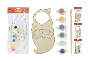 Dekorácia záves na dvere VIANOČNÉ, drevo + farby, mix druhov. rozmery: 110 x 240 x 5 mm materiál: drevo mix druhov: snehuliak, Santa, sob súčasťou balenia je štetec + 6 kalíškov s farbami (biela, žltá, červená, …