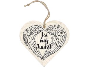 Drevené dekoračné srdce na zavesenie – Si môj anjel. Šírka 120 mm, hrúbka 10 mm.