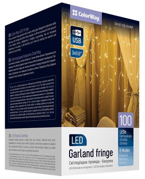 ColorWay CW-GW-300L33VBL; LED záves ColorWay je 3× 3metrová girlanda s 300 LED diódami na vytvorenie sviatočnej atmosféry.