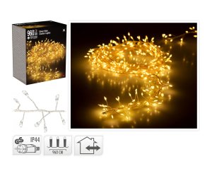 Osvetlenie vianočné 9,6 m, 960LED, teplá BÍ, STR drôt. dĺžka: 9,6 m prívodný kábel: 5 m osvetlenie: 960 LED materiál: strieborný drôt vnútorné / vonkajšie použitie do zásuvky Vianočné osvetlenie, ktoré rozžiari …