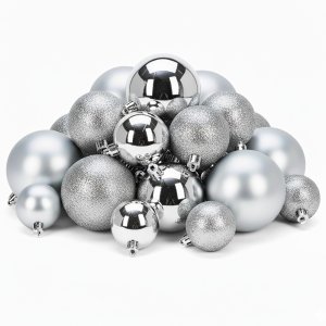 Vianočné ozdoby - guľaKs v balení 26Materiál: plastFarba: strieborná lesklá/matná/žiariváRozmer: 60/80 mmBanky na Vianočný stromček.