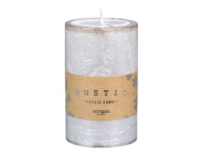 Sviečka v tvare valca s hladkým povrchom, v prevedení metalický lesk.