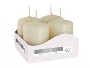 Sada 4 valcových sviečok 65 mm - hladký a ryhovaný, zeleno-krémový mix, elegantný.