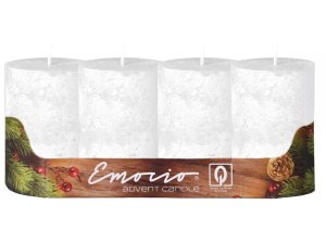 Adventná sviečka 60 x 40 mm, BIE metalická lesklá (4 ks). priemer: 3,8 cm výška: 6 cm farba: metalická biela, lesklá balenie: 4 ks doba horenia: 7 hodín / 1 sviečka Vysoká kvalita parafínu zaručuje vyhorenie …