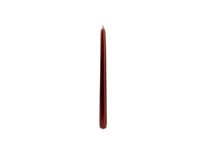 Lesklá kónická sviečka medenej farby.