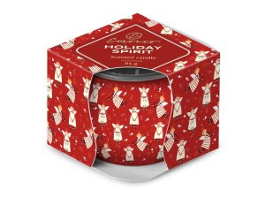 Vonná sviečka v skle s vianočným potlačou.