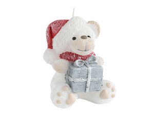 Figurálna sviečka stvárňujúca medvedíka s darčekom, je milý bytový doplnok dolaďujúci vianočnú atmosféru.