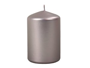 Sviečka v tvare valca s hladkým povrchom, v prevedení metalický lesk.