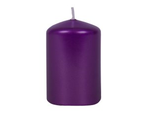 Sviečka v tvare valca s hladkým povrchom, v prevedení metalický lesk.