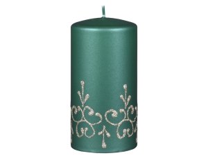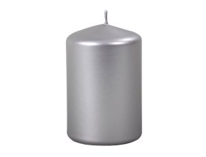 Sviečka v tvare valca s hladkým povrchom, v prevedení metalický lesk.