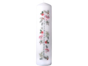 Sviečka v tvare valca s vyrezávanými pozdĺžnymi pruhmi.