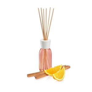 Svieža vôňa pomarančov a škorice s vysokým obsahom prírodných esencií príjemne prevonia vašu domácnosť Dodávané s ratanovými tyčinkami Náplň postačí na 4 – 5 týždňov Objem: 120 ml