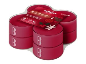 Červené čajové sviečky s vôňou Vianoc v hliníkovom kalíšku.