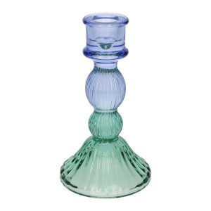 Mix sklenených svietnikov. Prvý je úplne hladkého dizajnu, druhý má pozdĺžne ryhy v menšom počte a tretí je viac ryhovaný.
