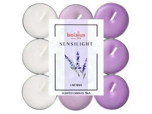 Vonné čajové sviečky Bolsius, Lavender, 9ks v balení. (3ks bielych sviečok, 3ks ružových sviečok, 3ks fialových sviečok)