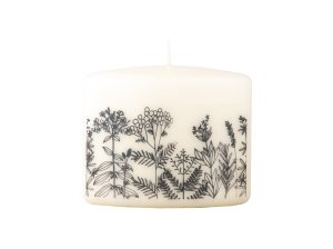 Elipsa sviečka vo farbe sl. kosť s motívom kvety 120x55x95mm
