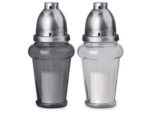 Plastová cintorínsky lampička z liateho vosku s kovovým viečkom.