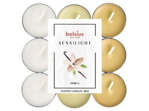 Vonné čajové sviečky Bolsius, Vanilla, 9ks v balení. (3ks bielych sviečok, 3ks svetlo-žltých sviečok, 3ks žltých sviečok)